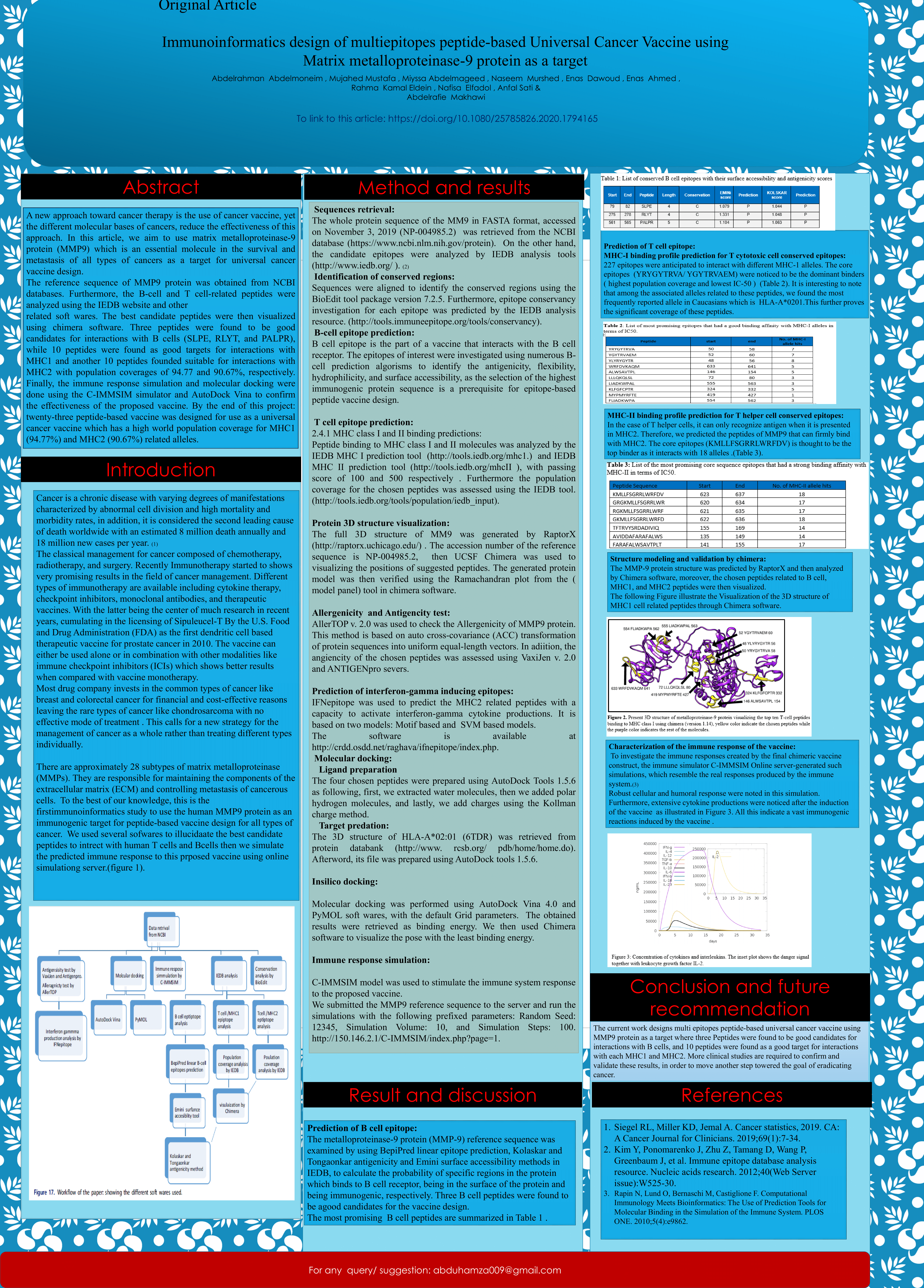 Immunoinformatics design of multiepitopes peptide-based universal cancer vaccine using matrix metalloproteinase-9 protein as a target