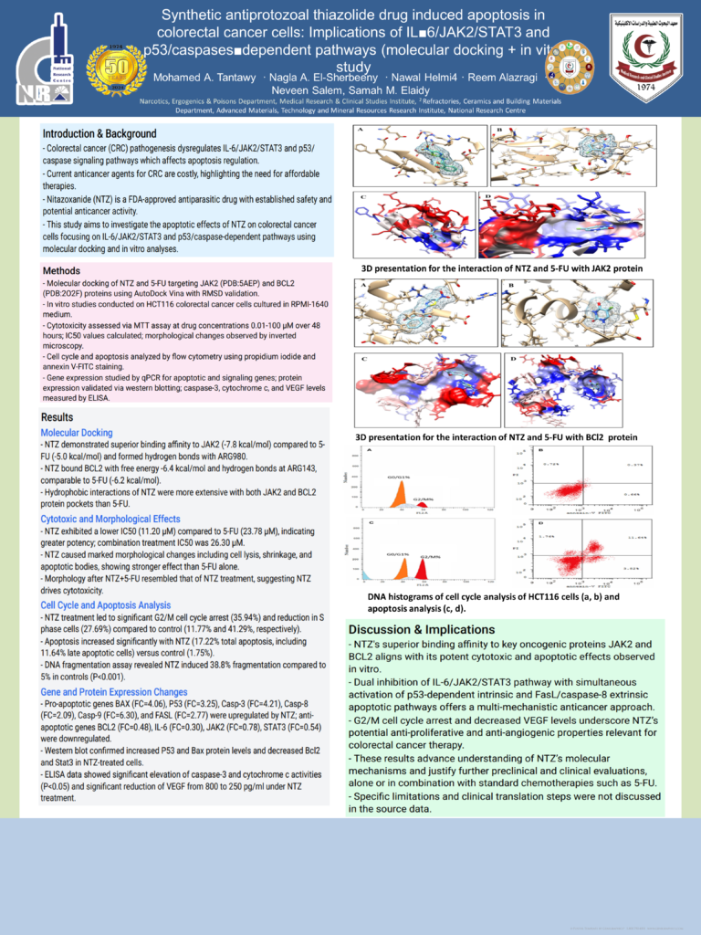 cell line. These potentials support further exploratory molecular researches targeting the therapeutic roles of NTZ in CRC;