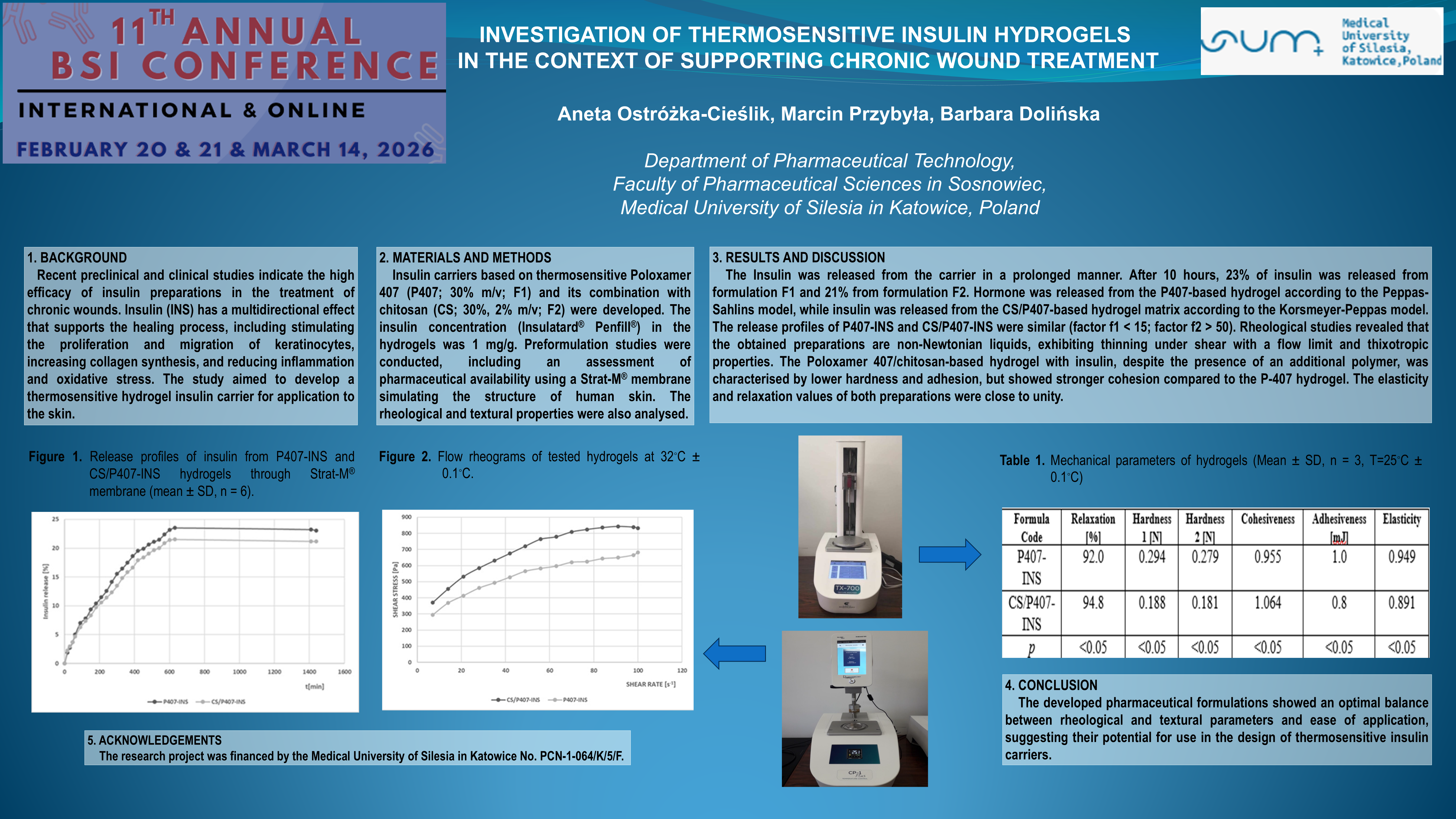BACKGROUND: Recent preclinical and clinical studies indicate the high efficacy of insulin preparations in the treatment of chronic wounds. Insulin (INS) has a multidirectional effect that supports the healing process, including stimulating the proliferation and migration of keratinocytes, increasing collagen synthesis, and reducing inflammation and oxidative stress. The study aimed to develop a thermosensitive hydrogel insulin carrier for application to the skin.